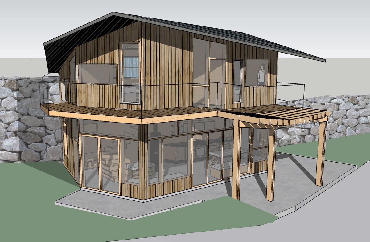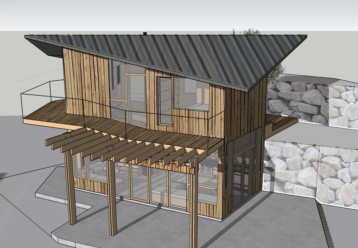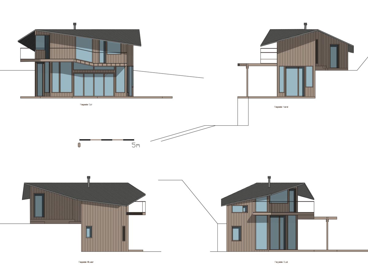 Une joyeuse famille souhaite construire un cabanon de taille modeste pour passer, dans un premier temps, ses weekend et ses vacances. Ainsi, le projet est minimal, ouvert sur la vue, intégré, sans impact sur l’environnement. La construction doit également créer le lien entre l’intérieur et l’extérieur.