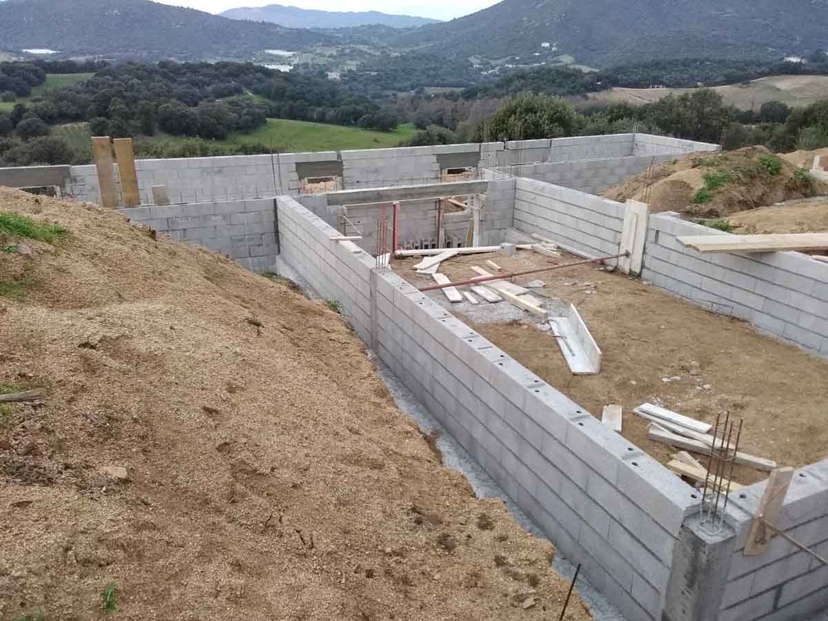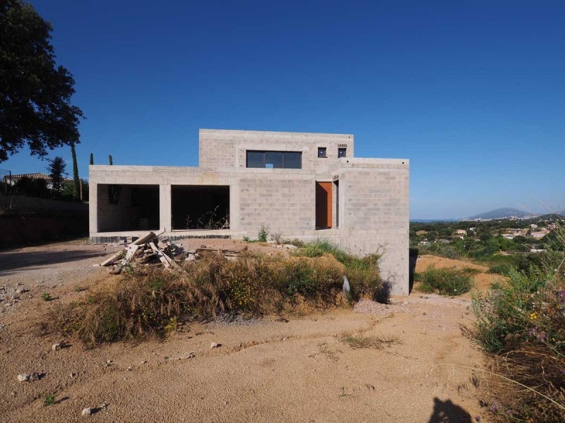 La maison à patio est située en périphérie d’Ajaccio, dans une zone d’habitat diffus.
