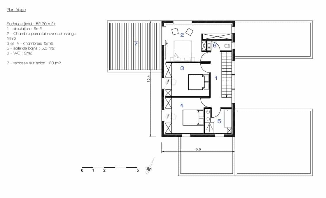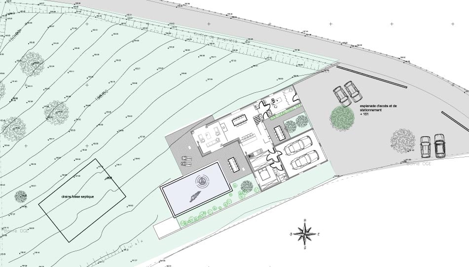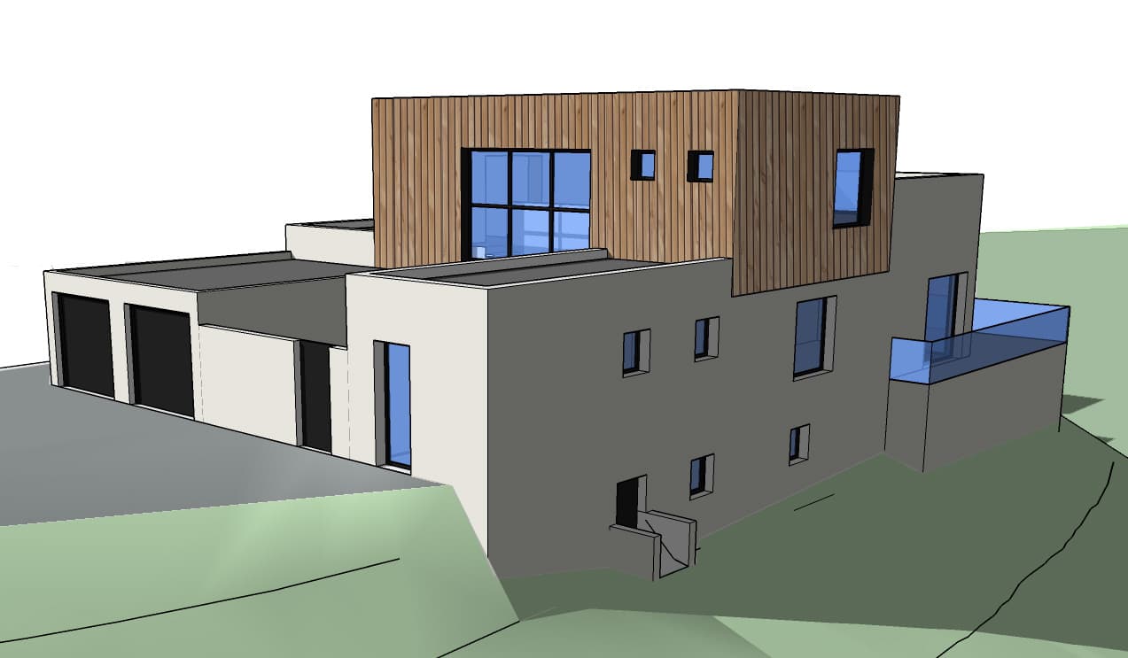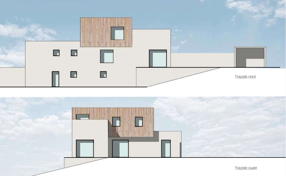 Les contraintes liées au site imposent donc d’ouvrir l’habitation au sud pour améliorer les performances thermiques, tout en se protégeant des vis-à-vis avec le voisinage. A l’inverse, il s’agit d’ouvrir largement des vues sur les trois autres façades.