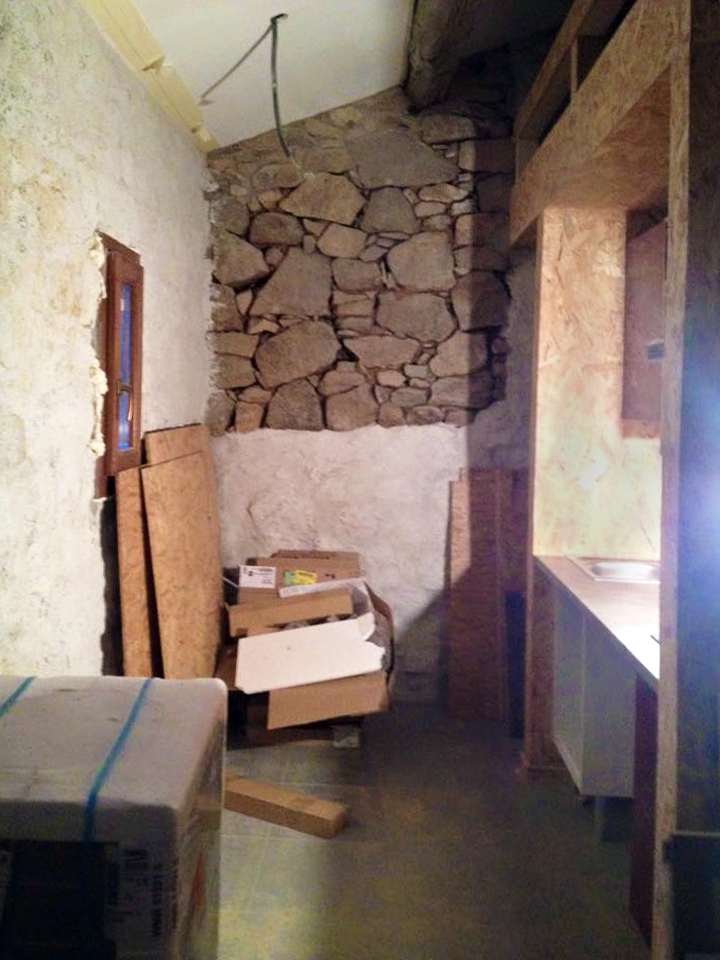 Nous travaillons  ces jours sur la rénovation d’un petit moulin et sa transformation en maisonnette. c’est un petit volume, avec un toit à une pente, exposé plein sud avec vue sur la vallée. L’espace intérieur est réduit, 20 m2 au sol, mais nous avons de la hauteur sous la partie haute de la toiture monopente. La vis de pressoir est toujours là, présente, vivante. La volonté du maître d’ouvrage est de la conserver et de respecter le volume, sans extension ni surélévation.